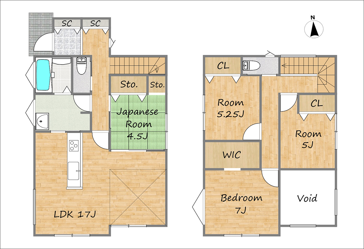 - 木造スレート葺2階建て・木造ガルバリウム鋼板葺2階建て
